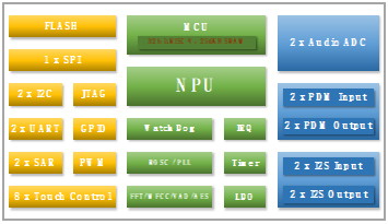 音旋風二代的CPU是頻率為196MHz的RISC-V架構,同時NPU更強,能夠支持浮點、低比特等更多運算方式;二代產品采用了QFN32-4x4/QFN48-6x6技術,封裝面積更小;待機喚醒功耗亦大幅下降,僅10mW,是音旋風一代的十分之一。此外,音旋風二代產品還支持離在線一體化設計,支持WiFi/藍牙等接口。
